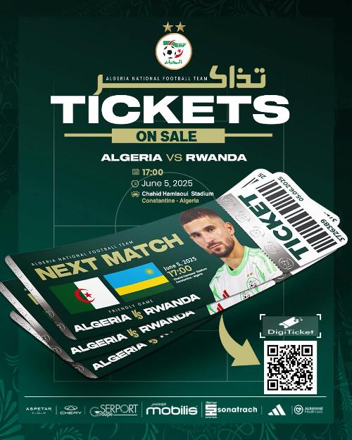 طرح اتحاد الكرة الجزائري مساء الأربعاء للبيع إلكترونيا، تذاكر مباراة المنتخب الوطني وضيفه الرواندي.