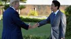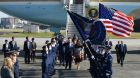 وهبطت الطائرة الرئاسية في وقت سابق الأحد، داخل القاعدة العسكرية الأمريكية في يوكوتا، على بعد زهاء أربعين كيلومتراً غرب طوكيو.