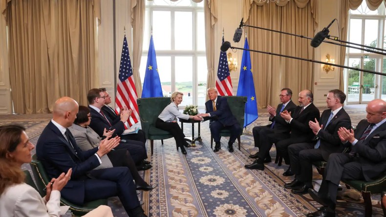 وقالت فون دير لاين، التي وصفت ترامب بأنه مفاوض صعب، إن الرسوم الجمركية البالغة 15% تم تطبيقها “على نطاق واسع”، وقالت للصحفيين في وقت لاحق إنها “أفضل ما يمكننا الحصول عليه”.