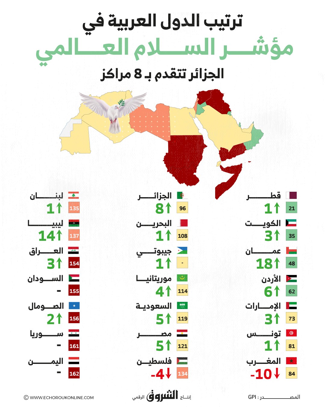 الجزائر تتقدم بـ 08 مراكز في مؤشر السلام العالمي (GPI) عام 2023..