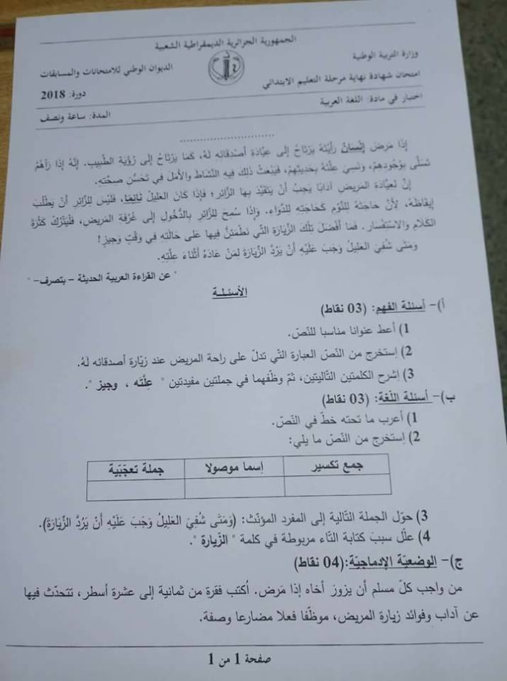 وانتشر موضوع اللغة العربية لامتحان شهادة التعليم الابتدائي، على نطاق واسع بموقع التواصل الاجتماعي “فيسبوك”، بعد دقائق فقط من انطلاق الامتحان، وذلك باستعمال الهواتف الذكية.