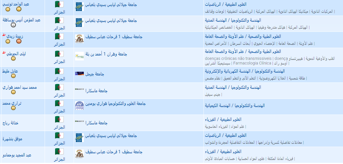 9- موفق بن شهرة، جامعة جيلالي ليابس بسيدي بلعباس، تخصص العلوم الطبيعية / الرياضيات.