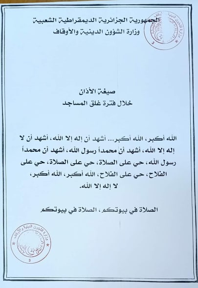 وأن قرار تعليق الصلاة في المساجد والإبقاء على شعيرة الأذان الذي دخل حيز التطبيق، الثلاثاء، أثر في نفوس الجزائريين وأبكى العديد منهم، حيث تناقل العديد من رواد مواقع التواصل الاجتماعي فيديوهات لصوت المؤذن الذي نادى “الصلاة في بيوتكم” فكانت كلمات مؤثرة، ولها وقع في نفوس الجزائريين.