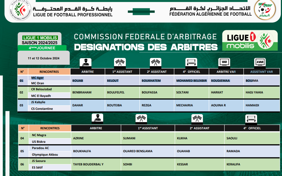 تعيين حكام مباريات الجولة الرابعة من الرابطة المحترفة الأولى