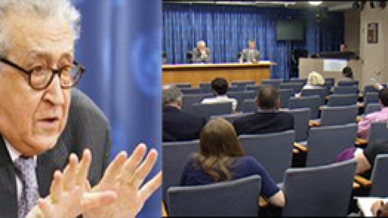 جانب من الندوة الصحفية التي نشطها الدبلوماسي الأخضر الإبراهيمي