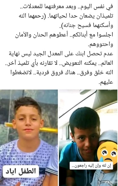 وفي فاجعة مماثلة، لا تختلف تفاصيلها كثيرا عن سابقاتها، حلّت بعائلة ناجي من ولاية المسيلة، ذهب سيف الدين، صاحب الـ 13 ربيعا فقط، ضحية النقاط الضعيفة، ما جعل نشطاء يطلقون هاشتاغ “#لا للضغط.. أطفالكم أمانة”!