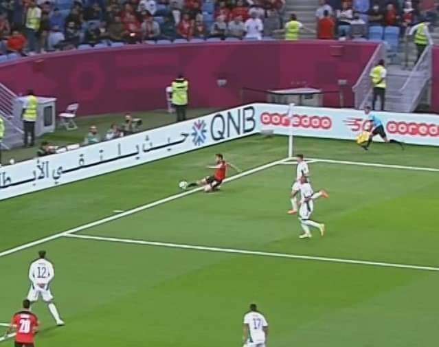 وتبيّن الصور أن الكرة تجاوزت الخط، وهو الأمر الذي لم يعلن عنه حكم التماس رغم أنه كان متواجدا على مقربة من اللاعب المصري الذي تجاوزت كرته الخط.