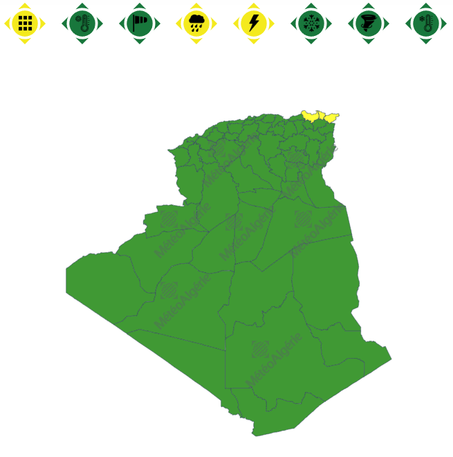 وحسب تنبيه للديوان الوطني للأرصاد الجوية من المستوى الأول باللون الأصفر على خريطة اليقظة، فإن الولايات المعنية بتساقط الأمطار هي: عنابة، سكيكدة والطارف