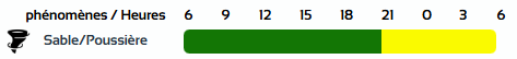 وفي نشرية أخرى، من المستوى الأول باللون الأصفر على خريطة اليقظة، ستجتاح الزوابع الرملية ولاية عين صالح من الساعة التاسعة ليلا من اليوم الإثنين لغاية الساعة السادسة صباحا من يوم غد الثلاثاء.