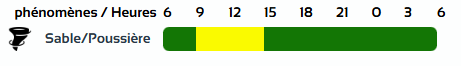وحسب تنبيه آخر للديوان الوطني للأرصاد الجوية من المستوى الأول باللون الأصفر على خريطة اليقظة، فإن ولاياتي: عين صالح وأدرار ستعرف زوابع رملية بداية من الساعة التاسعة صباحا من اليوم الخميس لغاية الساعة الثالثة مساءً من نفس اليوم.