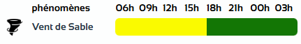 وحسب تنبيه آخر للديوان الوطني للأرصاد الجوية من المستوى الأول باللون الأصفر على خريطة اليقظة، فإن ولايات: إيليزي، عين صالح وأدرار ستعرف زوابع رملية بداية من الساعة السادسة صباحًا من اليوم الإثنين إلى غاية الساعة السادسة مساءً من نفس اليوم.