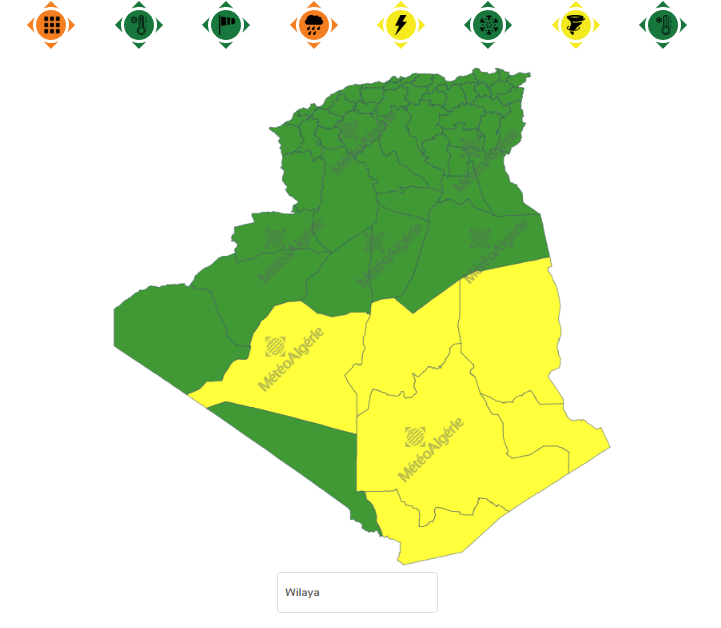 ونبه الديوان في نشرية له من المستوى الأول باللون الأصفر على خريطة اليقظة، من زوابع على ولايات: إيليزي، عين صالح، أدرار، جانت، تمنراست وعين قزام.