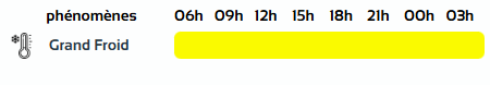 وحسب تنبيه آخر من المستوى الأول باللون الأصفر على خريطة اليقظة فإن الولايات المعنية بالبرودة الشديدة هي: النعامة، البيض، تيارت والجلفة.