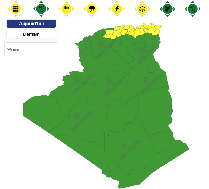 وحسب تنبيه للديوان الوطني للأرصاد الجوية من المستوى الأول باللون الأصفر على خريطة اليقظة، فإن الولاية المعنية بتساقط الثلوج هي: تيزي وزو وخنشلة.