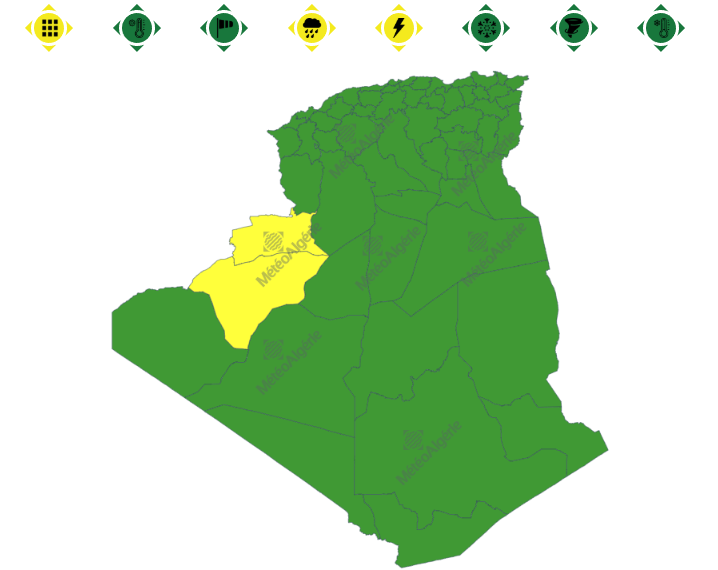 وحسب تنبيه للديوان الوطني للأرصاد الجوية من المستوى الأول باللون الأصفر على خريطة اليقظة، فإن الولايات المعنية بتساقط الأمطار هي: بشار وبني عباس.