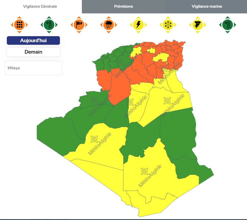 في ستعرف كل من ولايات: البليدة، بومرداس، تيزي وزو، بجاية، جيجل، سكيكدة، عنابة، الطارف، البويرة،  سطيف، ميلة، قسنطينة، قالمة، سوق أهراس، المدية تساقط أمطار رعدية.