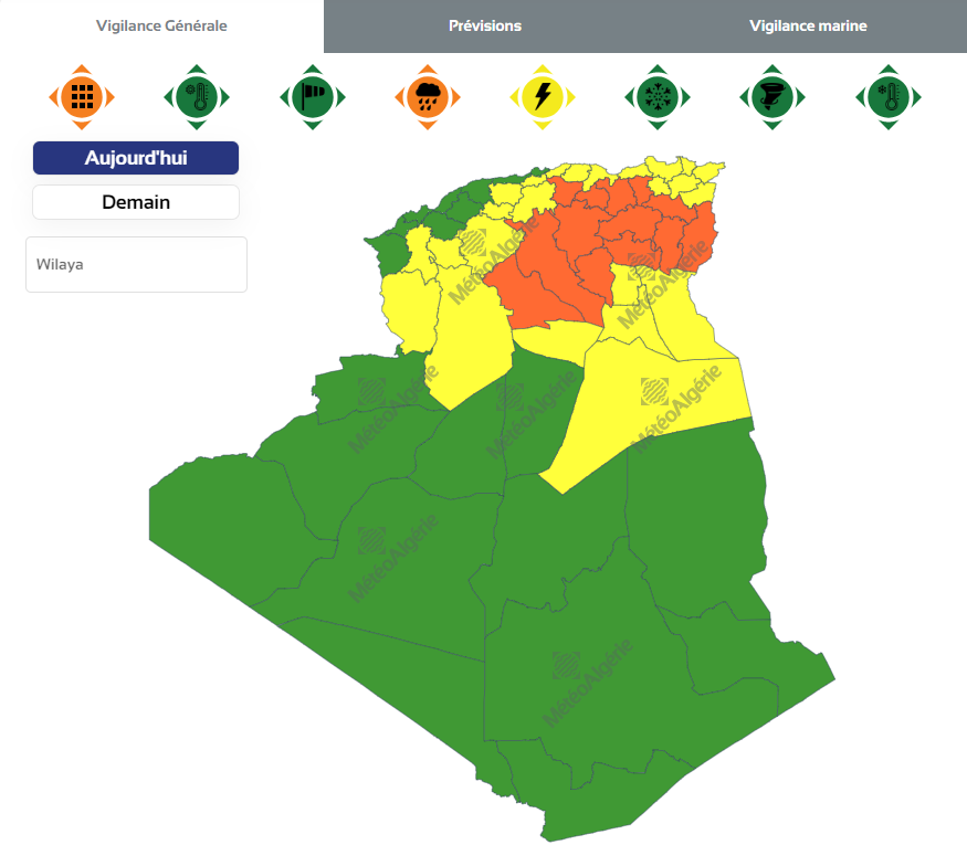 نبه الديوان الوطني للأرصاد الجوية، في نشرية جديدة حول حالة الطقس ليوم الجمعة من تساقط أمطار رعدية غزيرة جدا عبر 13 ولاية.