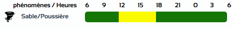 وفي نشرية أخرى، من المستوى الأول باللون الأصفر على خريطة اليقظة، ستجتاح الزوابع الرملية ولايات: عين صالح، أدرار وبرج باجي مختار من الساعة 12 زوالا من اليوم السبت لغاية الساعة السادسة مساءً من نفس اليوم.
