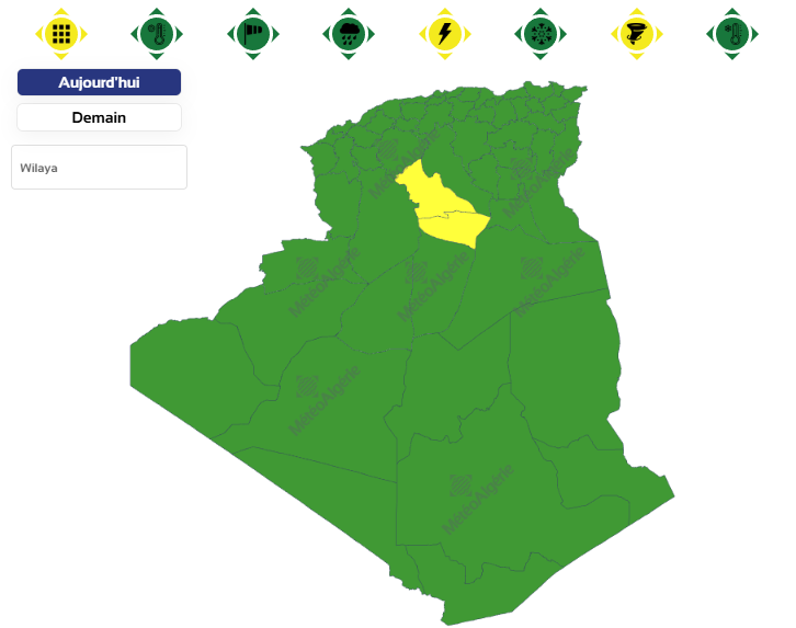 وحسب تنبيه للديوان الوطني للأرصاد الجوية من المستوى الأول باللون الأصفر على خريطة اليقظة، فإن الولايتين المعنيتين بالرعود ابتداءً من الساعة 12 زوالًا من اليوم السبت إلى غاية الساعة السادسة مساءً من اليوم نفسه هما غرداية والأغواط.