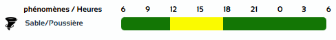 وفي نشرية أخرى من المستوى الأول باللون الأصفر على خريطة اليقظة، ستجتاح الزوابع الرملية ولايتي بشار وبني عباس ابتداءً من الساعة 12 زوالًا من اليوم السبت إلى غاية الساعة السادسة مساءً من اليوم نفسه.