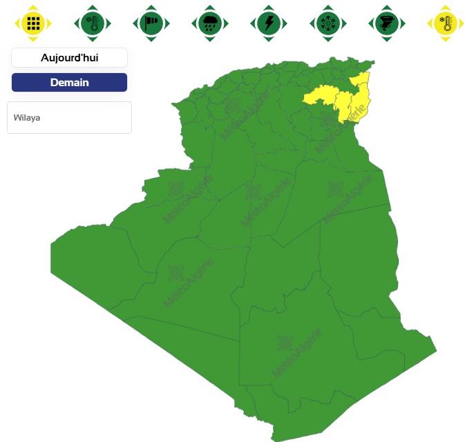 وحسب ذات التنبيه، ستكون النشرية صالحة بداية من الساعة السادسة صباحا من اليوم الأربعاء إلى غاية الساعة السادسة صباحا من يوم غد الخميس.