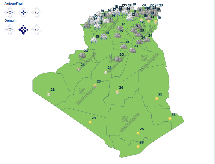 توقع الديوان الوطني للأرصاد الجوية، عودة تساقط الأمطار الغزيرة مع انخفاض في درجات الحرارة، غد الجمعة، عبر عدة ولايات.
