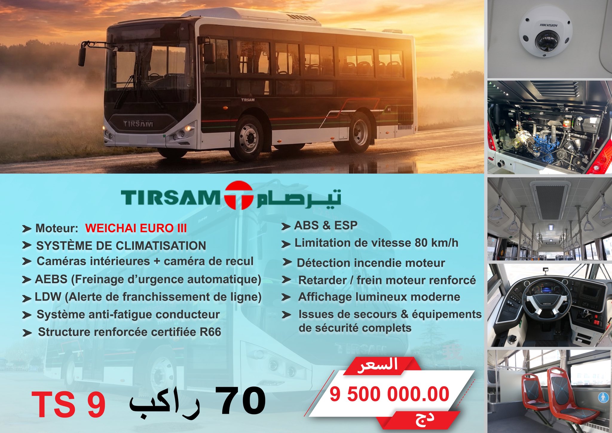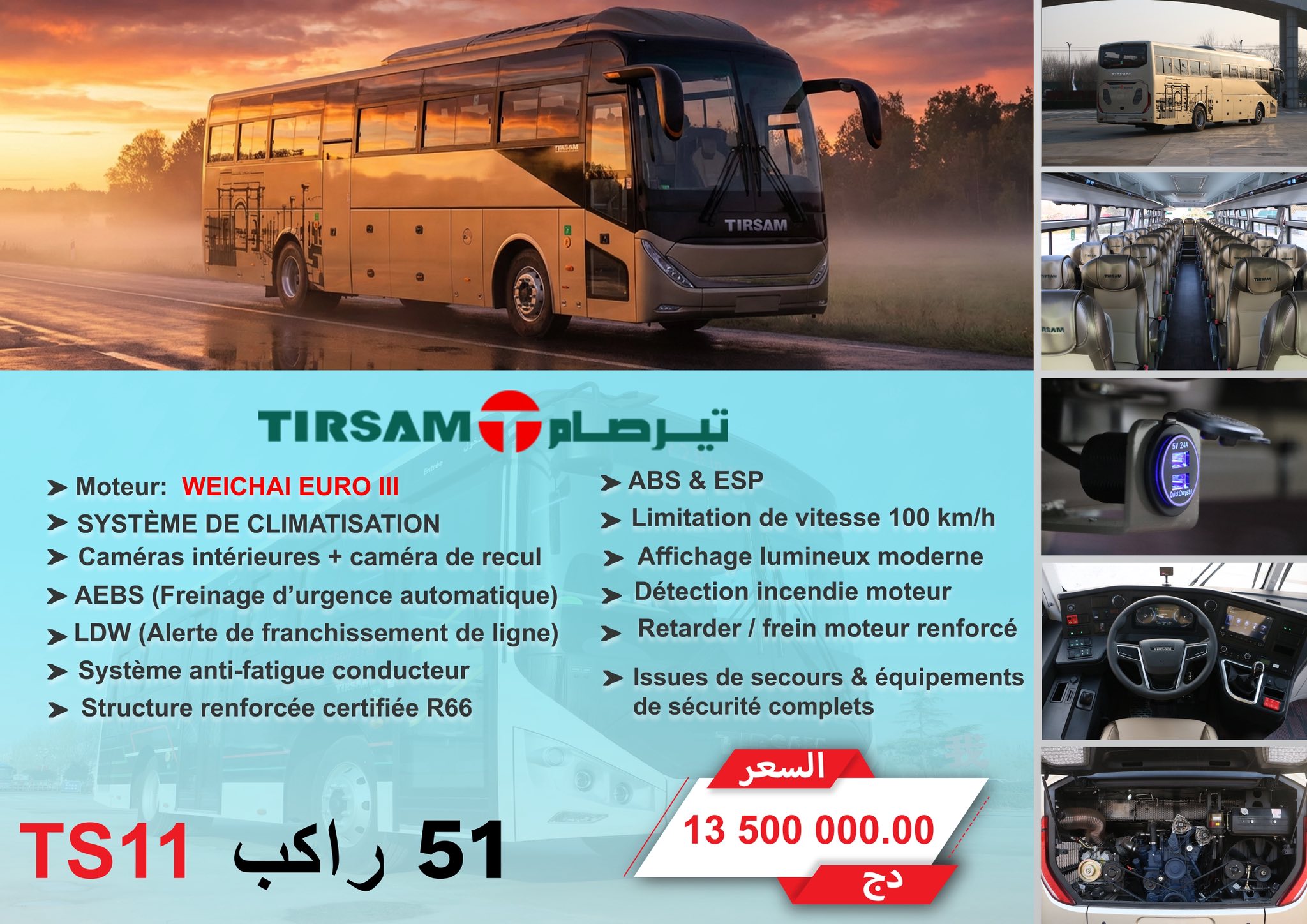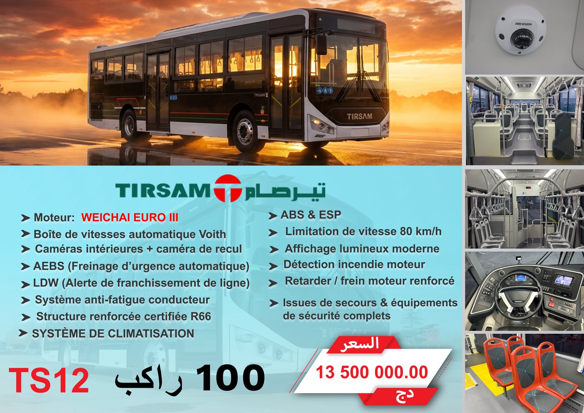وأكدت “تيرصام” أن حافلاتها مطابقة تماماً للمعايير التقنية والتنظيمية المعتمدة، وتندرج ضمن جهود دعم النقل الحضري وتطوير خدماته من خلال توفير حلول متنوعة تسهم في تحسين جودة النقل العمومي.
