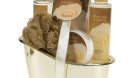 من اللوازم المهمة في الجهاز مواد التجميل والعطور، عليك الآن ودون تردد أن تبتعدي عن علب الماكياج المغشوشة التي تباع في الشوارع، اهرعي لمحلات الماكياج الشيك مثل سيفورا واشتري “الباليت” التي تناسب لون وجهك، لا تنسي آحمر الشفاه (موديلين على الأقل) والماسكارا وطلاء الأظافر وقلم الكحل وكريم الأساس ومزيل العيوب وكريمات النهار والليل وكريم مرطب لليد والجسم وخاصة الكوعين والركبتين. ولا تنسي لوازم إزالة الشعر فقد تحتاجينها بسرعة مع شفرات الحلاقة وكريم النتف. أكملي تسوقك بشامبوانات وملطف للشعر والصابونات ذات الـph الحيادي.