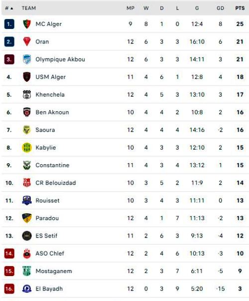 وعمّق الرّائد نادي مولودية الجزائر الفارق إلى أربع نقاط، عن المطاردَين فريقَي مولودية وهران وأولمبيك أقبو.