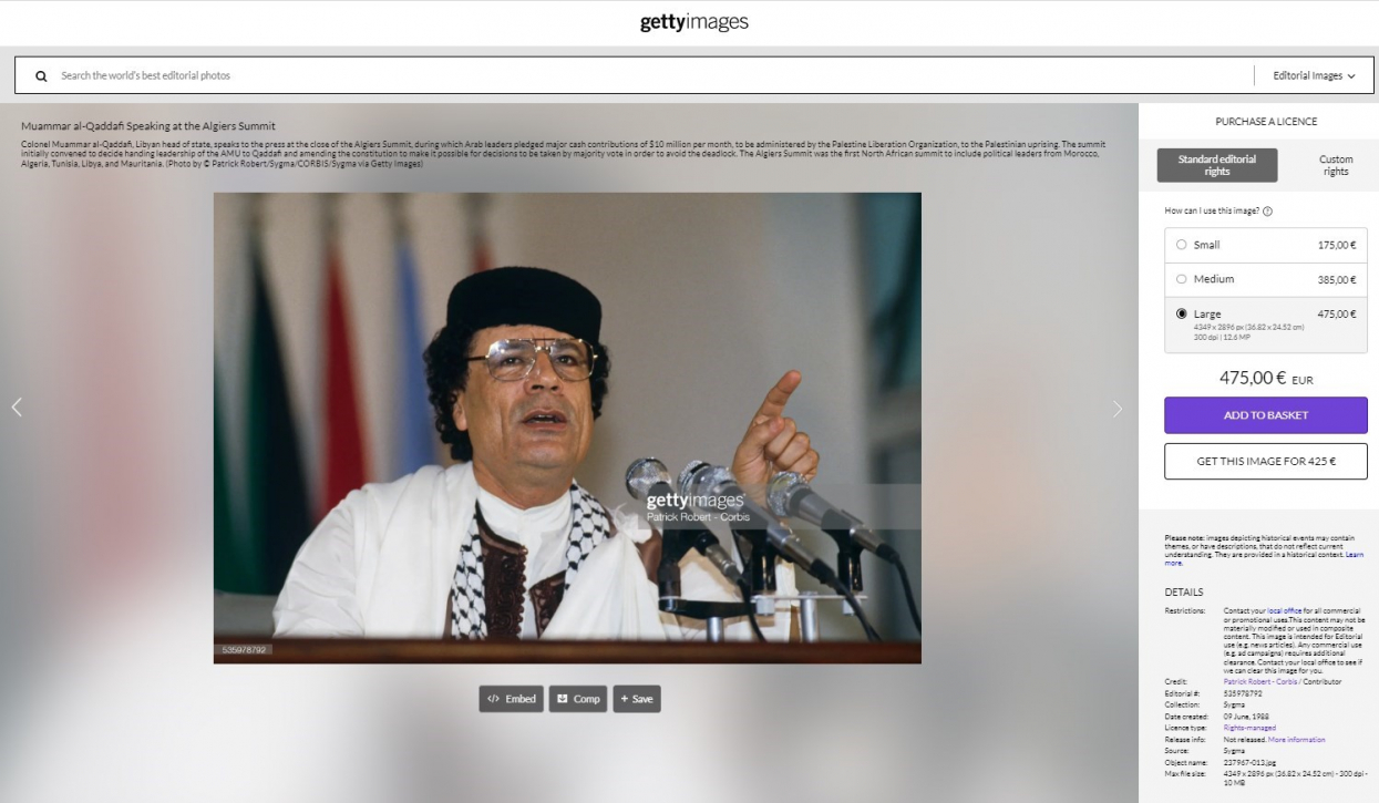 وتُظهر الصورة الأصليّة معمّر القذافي نفسه في قمّة عربيّة في الجزائر عام 1988، بحسب وكالة غيتي الناشرة لها.