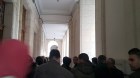 08:07: طوابير أمام باب الدخول الخاص بمحكمة سيدي أمحمد قبل فتح الباب وتفتيش أمني لكل من يريد ولوج المحكمة.