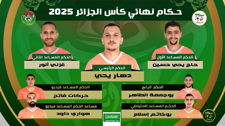 كشف اتحاد الكرة الجزائري مساء الأربعاء، عن طاقم تحكيم نهائي منافسة كأس الجمهورية.