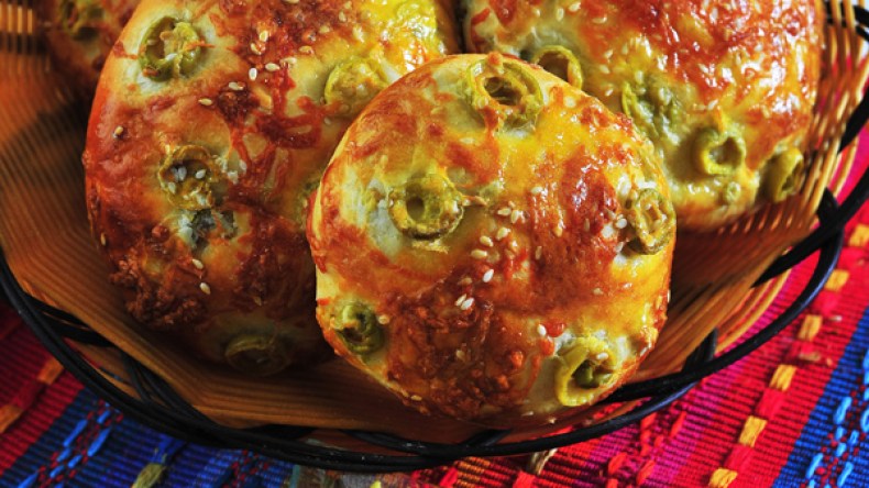 خبز بالجبن والزيتون
