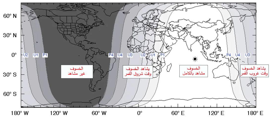 وأوضح المهندس محمد شوكت عودة، مدير المركز، أن شرق العالم العربي سيشهد شروق القمر قبل بداية الخسوف، فيما سيشرق القمر من وسط المنطقة العربية وهو في مراحله الأولى، أما في الغرب العربي فسيظهر القمر وهو في المراحل الأخيرة من الخسوف.
