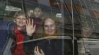 ولوح الأشخاص الذين تجمعوا خارج مبنى السفارة إليهم فيما غادرت المركبات التي تحمل لوحات دبلوماسية. وشوهدت العائلات تلوح من خلف نوافذ العربة التي تقلهم فيما التقط الأطفال في الداخل صوراً بهواتفهم النقالة، وفقاً لفرانس برس.