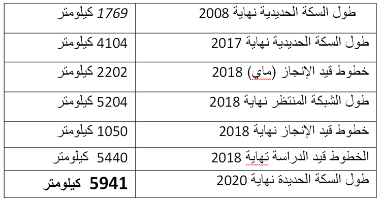 و هل تعلم أن الجنوب غير معني يهذه الأرقام لأن دولة الإستقلال لم تمدد و لا متر واحد من سكة حديد في الجنوب و ما هو موج ود فيهمن إنجاز المستعمر أي قبل 62