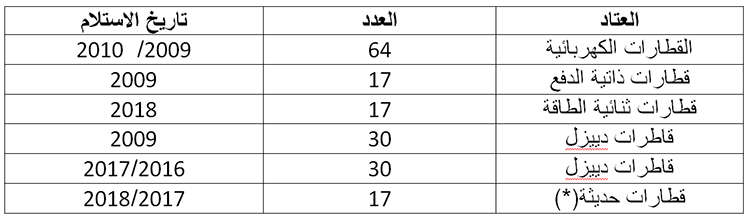 الجدول رقم 3:اقتناء عتاد السكة الحديدية منذ 2009.