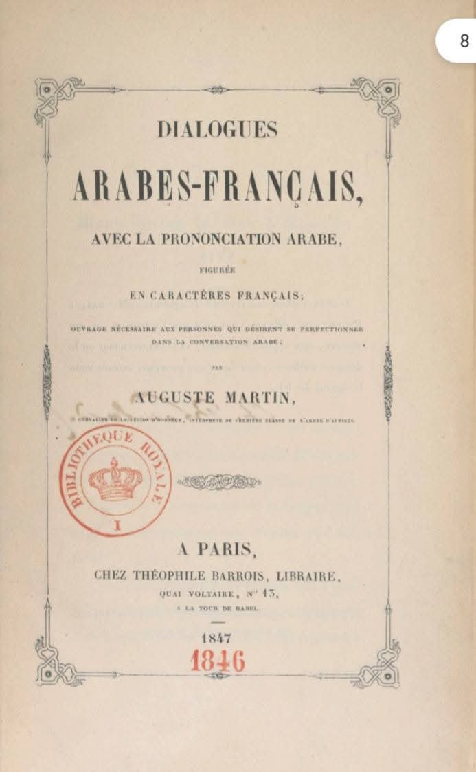 في كتابه “حوارات عربية فرنسية”، استعرض الكاتب الفرنسي، أوغست مارتن، مجموعة هائلة من العبارات المستعملة في اللهجة الجزائرية، قبل 200 سنة تقريبا، أي عام 1846، وتضمن كتاب مارتن معاني الأسماء والأمثلة، من الدارجة الجزائرية، مع ترجمة إلى اللغة الفرنسية. اللهجة الجزائرية، بمفرداتها الغنية وسلاسة كلماتها وعذب صوتها، كانت ولا تزال محل دراسات أكاديمية. ولعل كتاب “حوارات عربية فرنسية”، من بين أقدمها. والسؤال الذي يطرح بإلحاح: هل طرأ تغيير على لهجتنا؟ أم بقيت كما هي؟ قبل أن نجيب عن هذا السؤال الجميل، علينا أن نورد أمثلة كثيرة، كي يتسنى لنا أن نقارن بين لهجة الأمس واليوم.