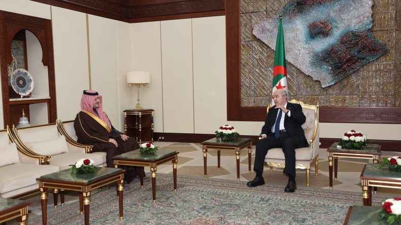 وجاء في بيان للرئاسة “رئيس الجمهورية السيد عبد المجيد تبون يستقبل في هذه الأثناء صاحب السمو الملكي الأمير عبد العزيز بن سعود بن نايف بن عبد العزيز آل سعود”.