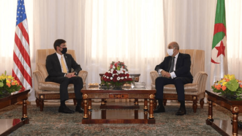 وحسب بيان لرئاسة الجمهورية “استقبل رئيس الجمهورية السيد عبد المجيد تبّون صباح اليوم السيد مارك طوماس إِسْبِرْ Mark Thomas ESPER وزير الدفاع في الولايات المتحدة الأمريكية الذي يقوم بزيارة عمل للجزائر”.