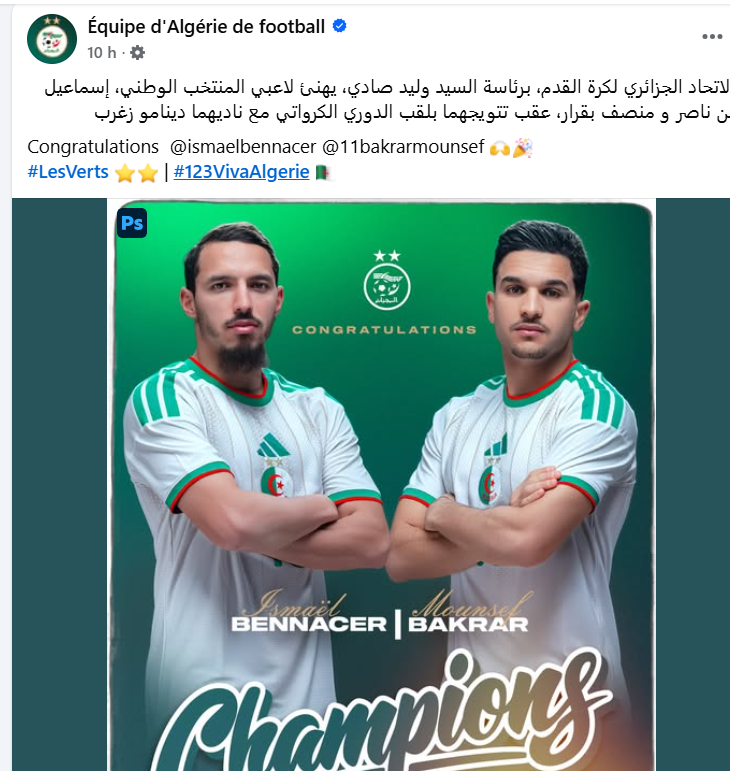 وقدم الاتحاد الجزائري برئاسة وليد صادي التهاني للثنائي بن ناصر وبقرار، بعد تتويجهما بلقب الدوري الكرواتي مع ناديهما دينامو زغرب.