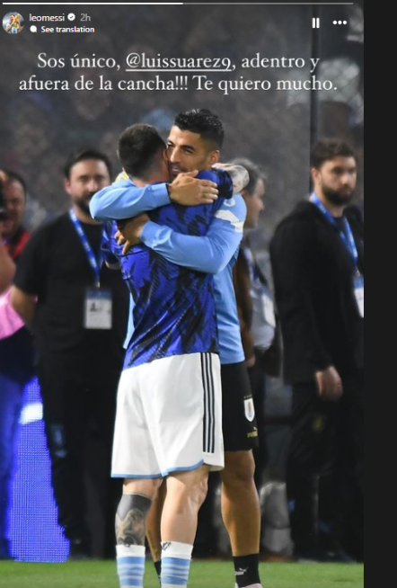 ويرتبط ميسي وسواريز بعلاقة وطيدة منذ تزاملهما في نادي برشلونة بين العامين 2014 و2020 قبل أن يجتمعا مرة أخرى في نادي إنتر ميامي الأمريكي حيث مازالا يلعبان حتى الآن.