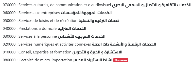 حيث تمّ إدراج نشاط “الاستيراد المصغر” بالرمز 080101، مباشرة بعد صدور قرار وزاري، يتضمن تحيين محتوى قائمة النشاطات المتعلقة بالمقاول الذاتي.