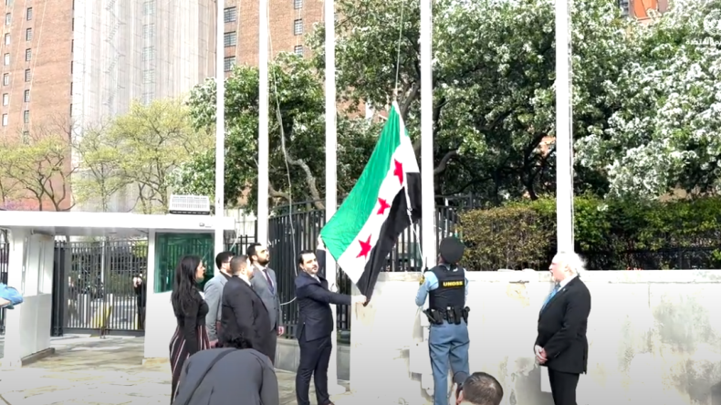 تم اليوم الجمعة، 25 أفريل، رفع العلم السوري ذي النجمات الثلاث بين أعلام الدول الأعضاء في المقر الدائم للأمم المتحدة في نيويورك، وهذا لأول مرة وبحضور وزير الخارجية السوري، أسعد الشيباني.