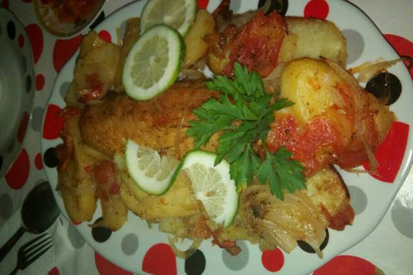 بطاطا، شرائح سكالوب، لحم مرحي، بصل، طماطم، توابل ( ملح، فلفل اسود،كمون، كركم، قرفة…)خردل، زعيترة، ملعقة زبدة