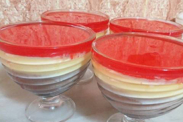 – في كاسرونة اخلطي الماء مع فلان الفراولة ثم ضعيه على النار إلى أن يغلي وأفرغيه فوق الطبقة الثانية.