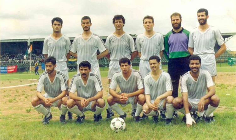 صف الواقفين، من اليمين: عبد الحكيم سرار، عنتر عصماني (حارس مرمى)، كمال عجاس، جمال نابتي، عبد الرزاق رحماني، محمد تريباش.