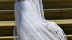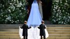 وسارت ميغان نجمة مسلسل (سوتس) بمفردها في فستان أبيض بأكمام طويلة داخل كنيسة سان جورج التي تعود للقرن الخامس عشر في قلعة وندسور حيث رافقها ولي العهد البريطاني الأمير تشارلز وسلمها لابنه المنتظر عند مذبح الكنيسة.