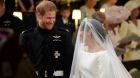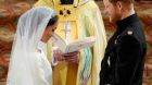 وبعد أن تبادل العروسان عهود الحب والتقدير “حتى الموت” وضع هاري السادس في ترتيب ولاية العرش في بريطانيا خاتماً من الذهب الويلزي حول إصبع ميغان أمام حضور من بينهم جدته الملكة إليزابيث وكبار أفراد العائلة المالكة ومشاهير من بينهم الإعلامية الأمريكية أوبرا وينفري.