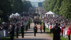 واصطف عشرات الآلاف في المسار الذي قطعته ميغان وصولاً إلى القلعة ولوحوا بالأعلام البريطانية وهتفوا مع مرور ميغان في سيارة ليموزين من طراز رولز رويس.